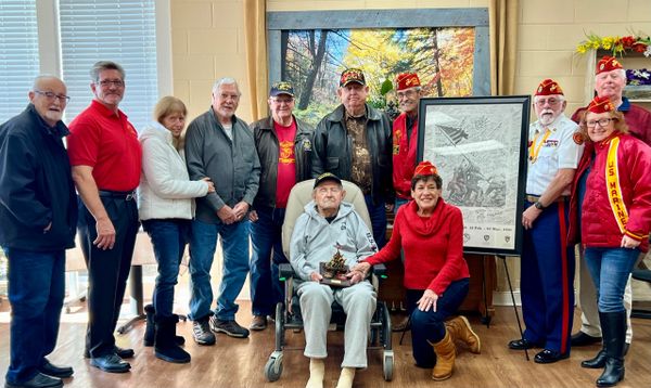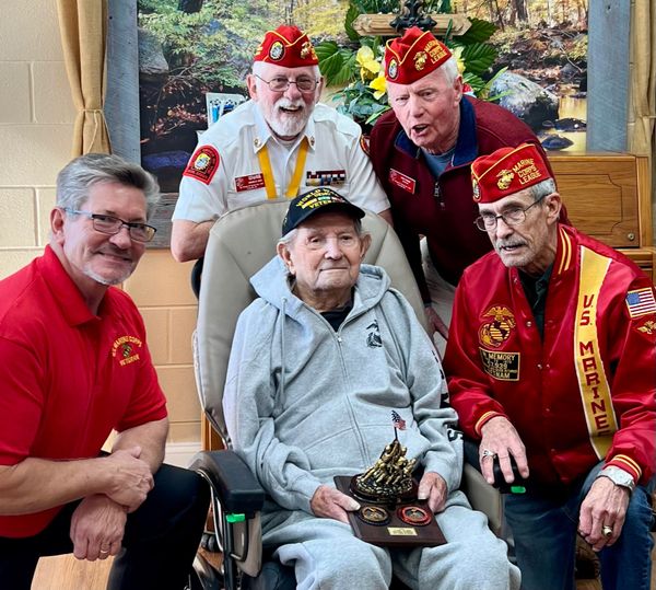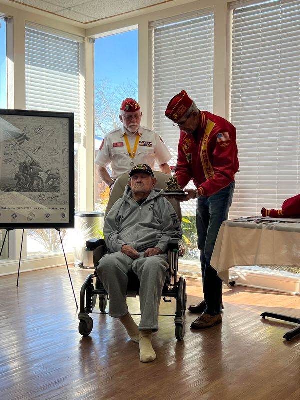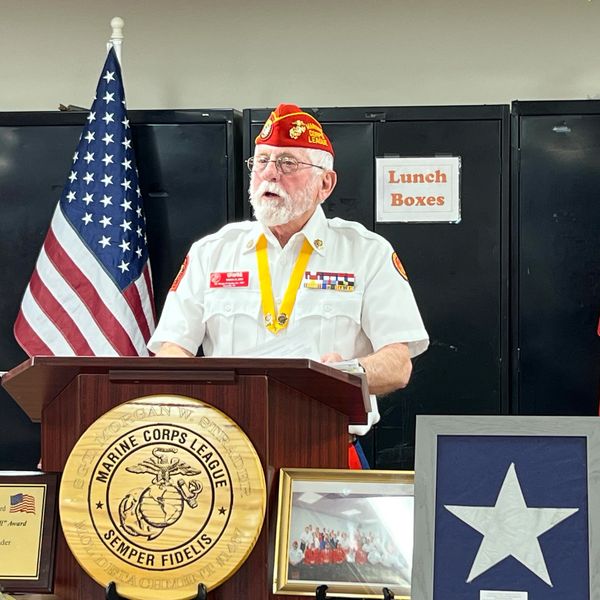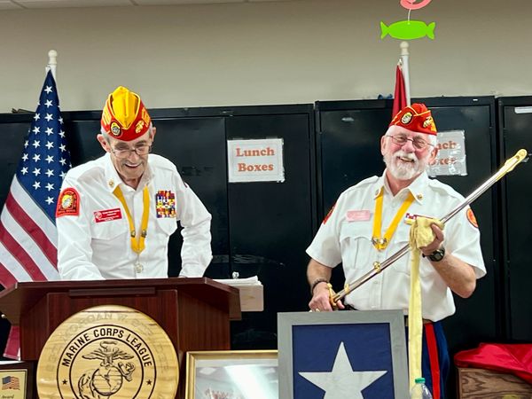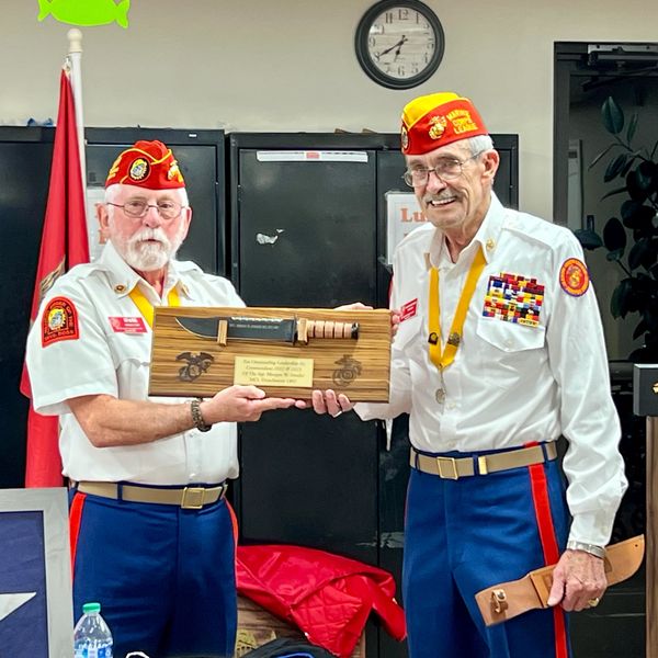 Outgoing Commandant Hudgens receiving a thank you award with a Kabar knife